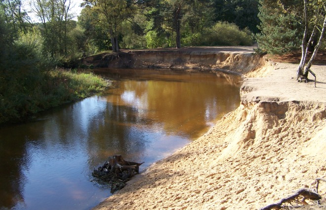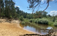 Viel fotografiert ist die bekannte Dinkelkurve an der Westseite dieses 750 Hektar großen und sehr vielfältigen Naturgebiets. Der Fluss schlängelt sich durch die Landschaft und sorgt an der einen Stelle für schöne Sandstreifen, an anderen Stellen für spektakulär steile Böschungen. Hier nagt das Wasser Zentimeter für Zentimeter von den Ufern ab, bei Hochwasser manchmal in einem enormen Tempo. Sogar die ältesten und stärksten Bäume sind solcher Naturgewalt nicht gewachsen und fallen dem Strom zur Beute. Dadurch verändert sich das Gesamtbild ständig, aber eins bleibt gleich: die besondere Schönheit dieser hügeligen Landschaft, mit ihren Tannen- und Laubbäumen, Wacholdersträuchern, Sanddünen und Heidefeldern. Auch Vögel aller Art lieben dieses Paradies. Die Ufer der Dinkel sind das Territorium des schillernden Eisvogels und der seltenen Uferschwalbe.